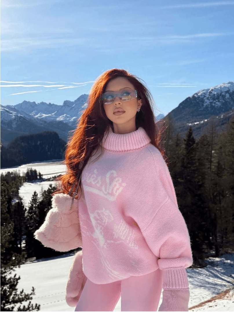 HOTÁo len chui đầu cổ tròn màu hồng tay dài họa tiết hươu dễ thương phong cách Âu Mỹ mới 2025