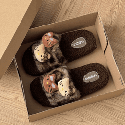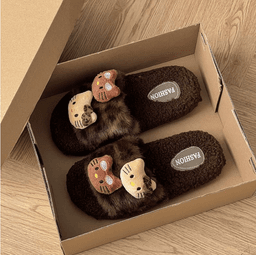 🧸 Dép lông hình báo dễ thương cho nữ – Mẫu mới Thu Đông 2025