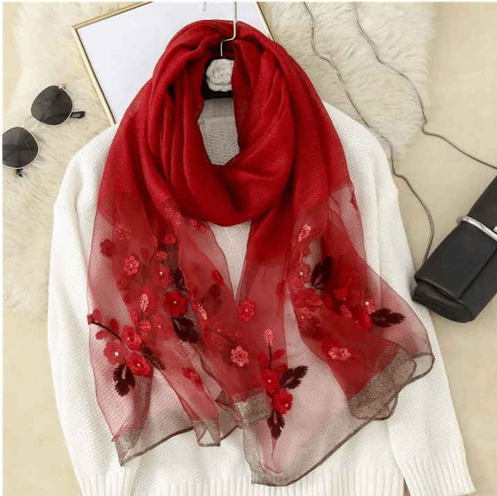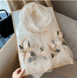 🌸 Khăn lụa thêu hoa cao cấp – Sang trọng, tinh tế, phù hợp mọi mùa