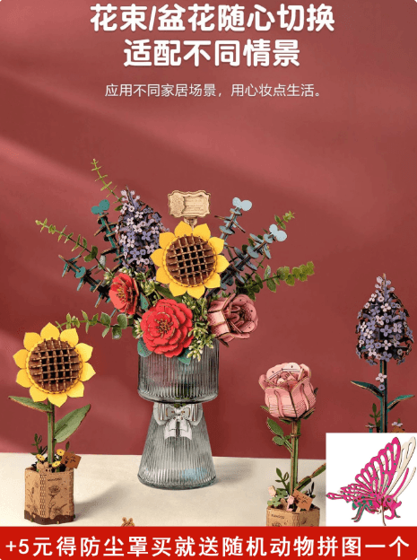 HOTRuowu Ruoke, nghệ thuật gỗ, phong cảnh hoa, bó hoa