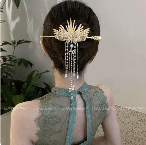 🌸 Chiếc kẹp tóc cánh tiên tua rua mang phong cách nữ tính và sang trọng, thiết kế tinh xảo giúp tôn lên vẻ dịu dàng, thanh lịch cho phái đẹp. Phần tua rua mềm mại chuyển động nhẹ nhàng theo từng bước đi, tạo điểm nhấn nổi bật cho mái tóc.
